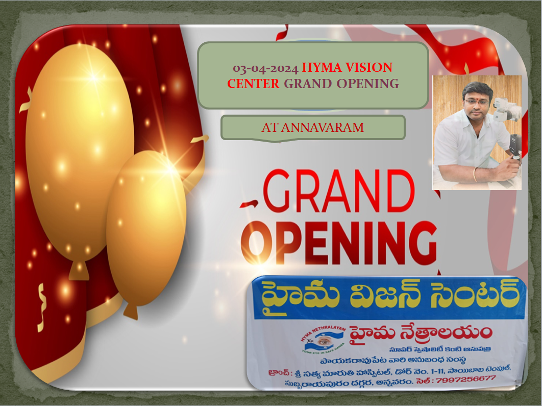 29-03-2024 14TH ANNIVERSARY .మేము హైమ నేత్రాలయం సిబ్బందిగా ఉన్నందుకు చాల గర్విస్తున్నాం,హైమ నేత్రాలయం 14TH ANNIVERSARY సందర్బంగా శుభాకాంక్షలు తెలియచేస్తున్నాం మరియు HYMA NETHRALAYAM అనేక సంవత్సరాలు ఇలాంటి ANNIVERSARY లు సంతోషంగా జరుపుకోవాలని హృదయపూర్వకంగా కోరుకుంటున్నాం