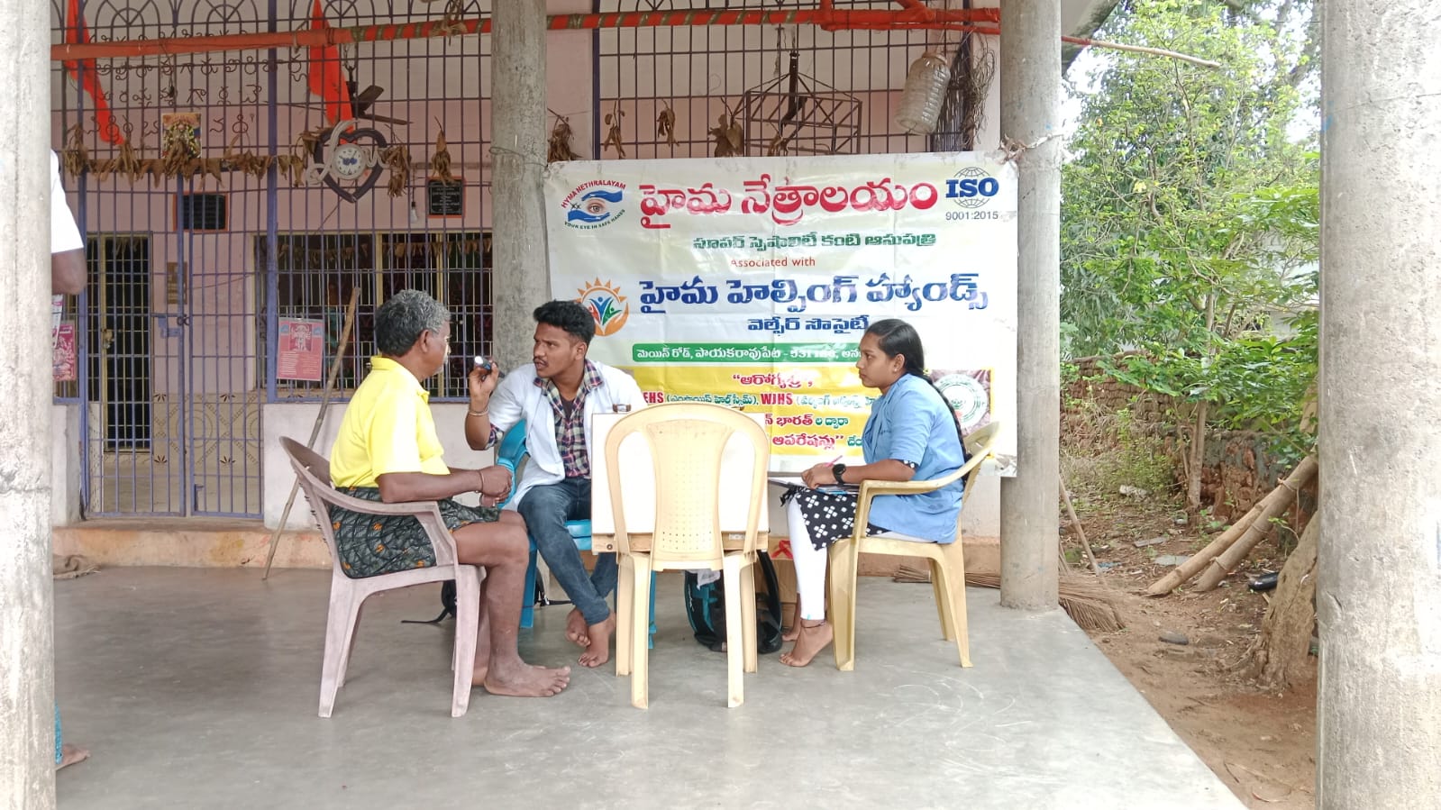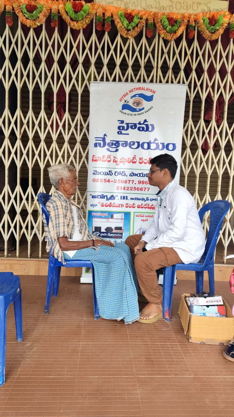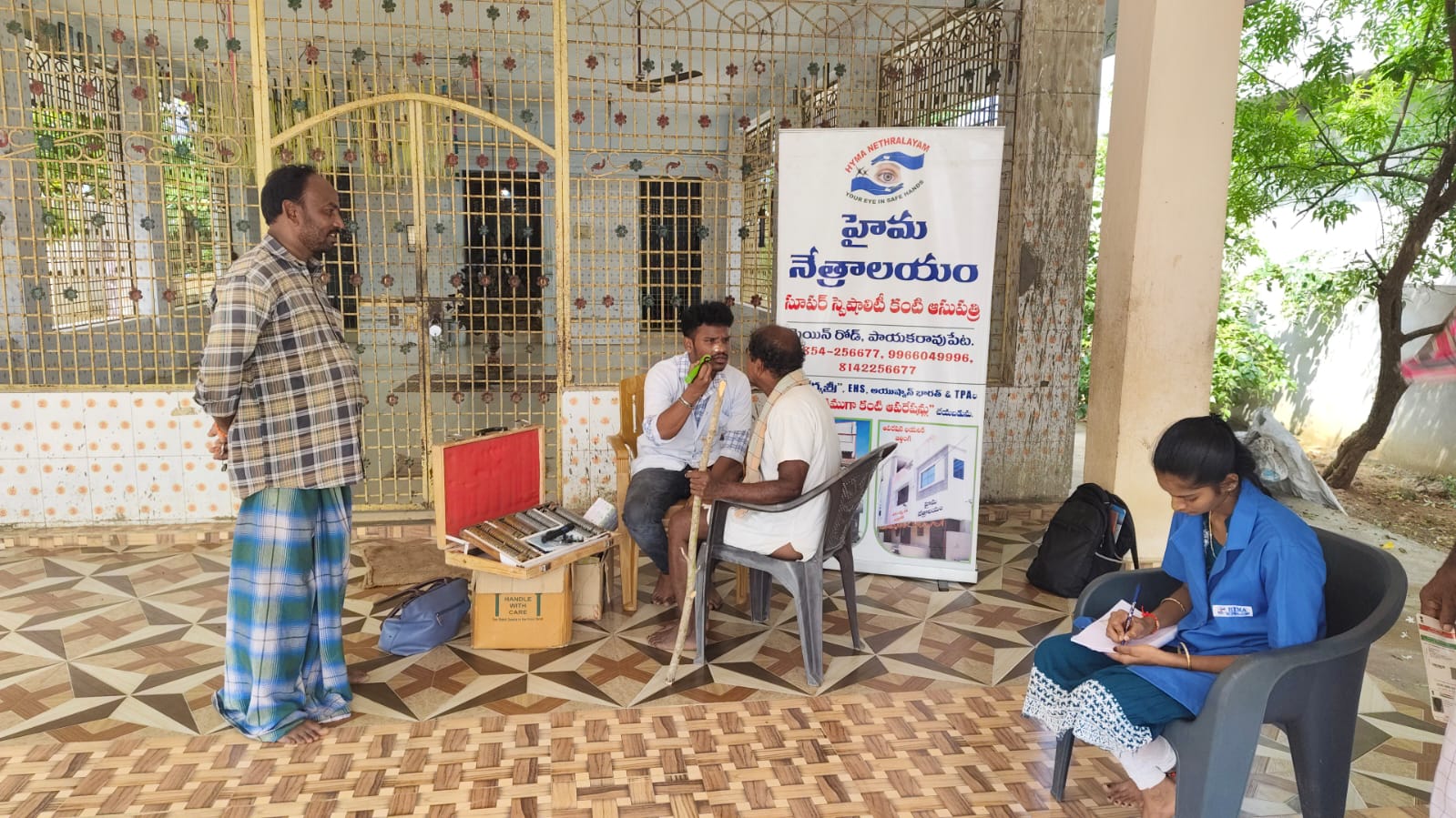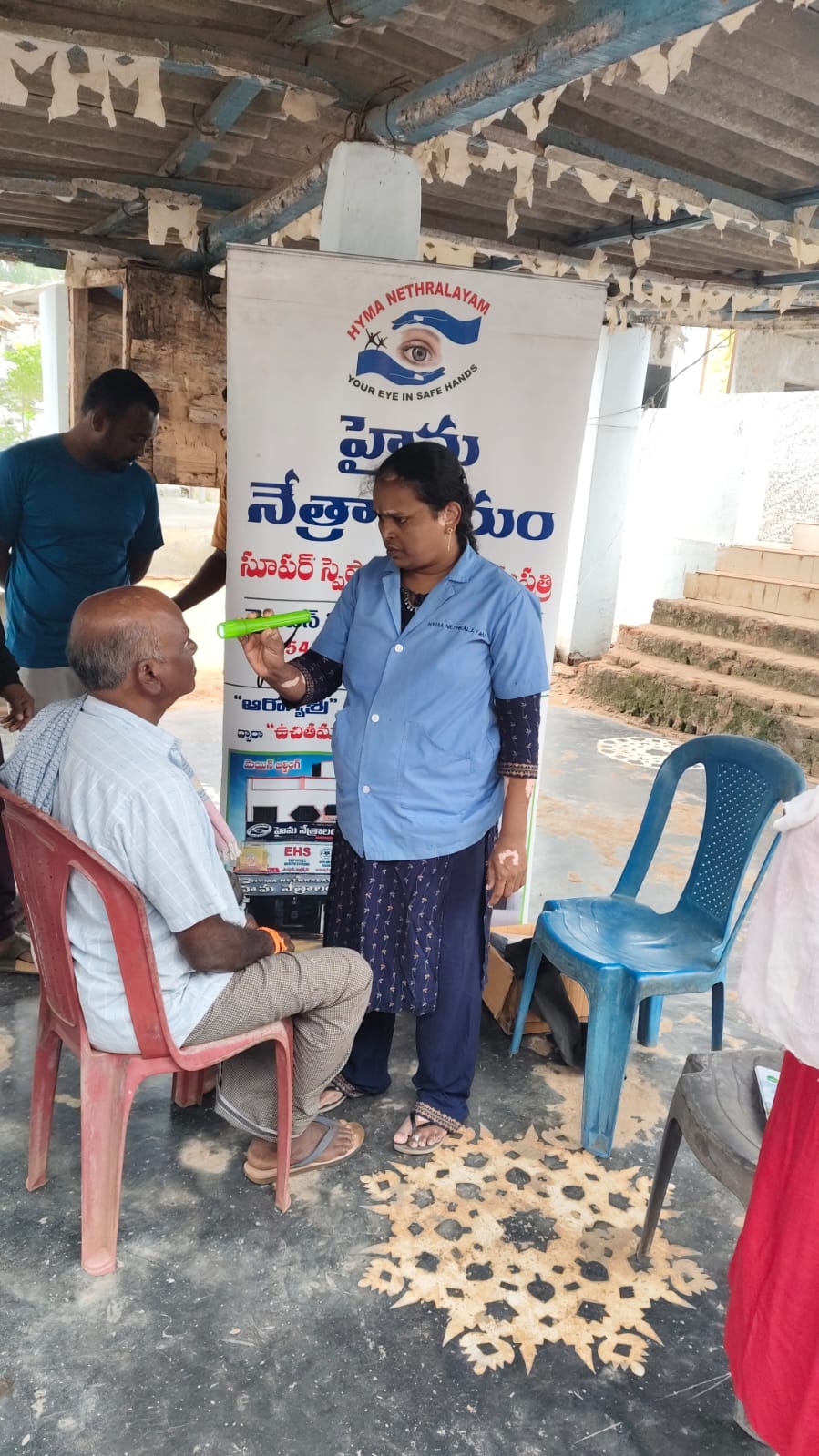 హైమ నేత్రాలయం సిబ్బంది EYE DROPS అందచేస్తున్న దృశ్యం