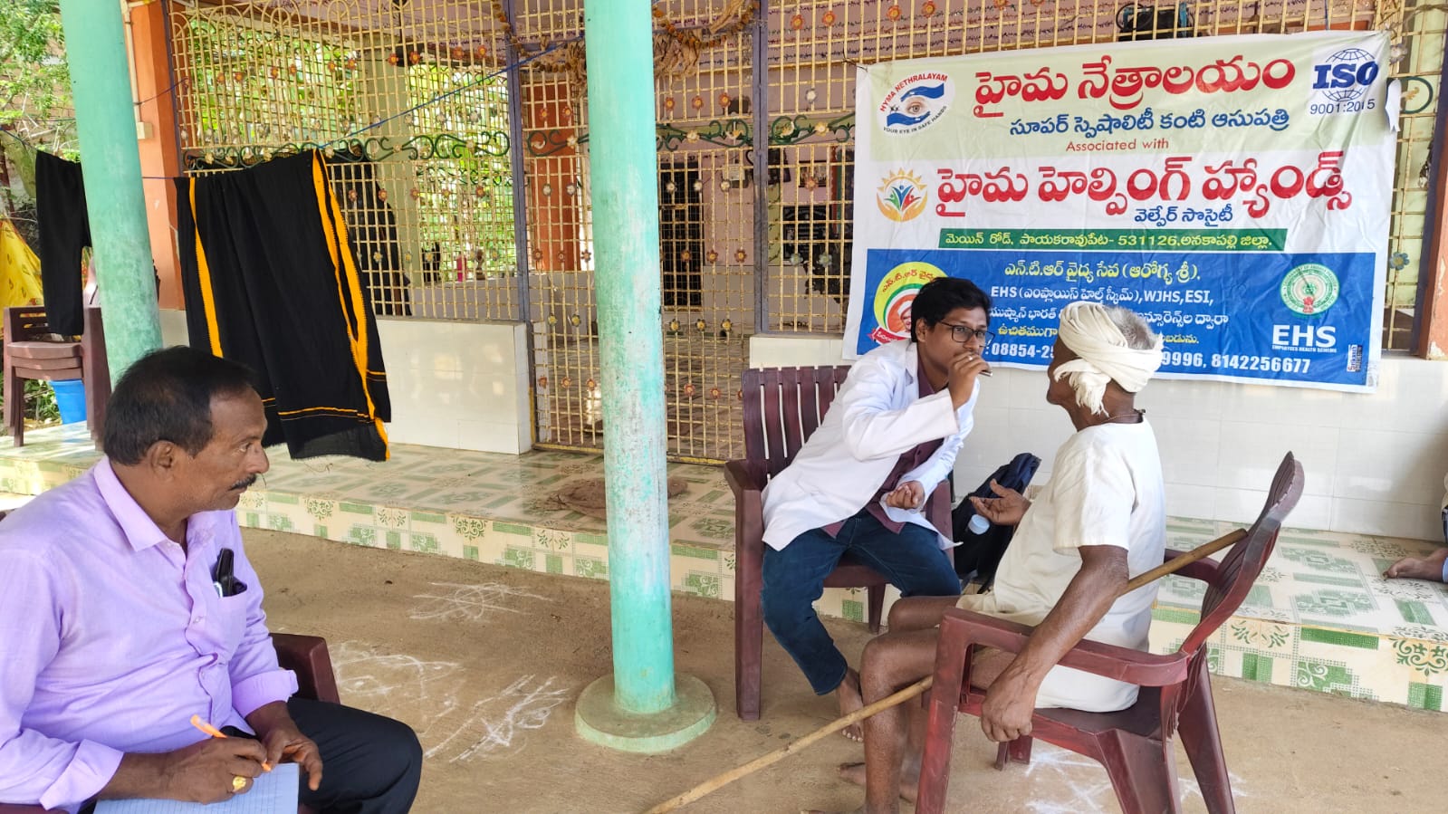 హైమ నేత్రాలయం సూపర్ స్పెషలిటీ కంటి ఆసుపత్రి వారి పర్యవేక్షణలో వేమవరం గ్రామం సర్పంచ్ శ్రీ కృష్ణ వారి ఆధ్వర్యంలో ఉచిత కంటి వైద్య శిబిరం తేది 15-03-2024 అనగా శుక్రవారం నిర్వహించిన దృశ్యం