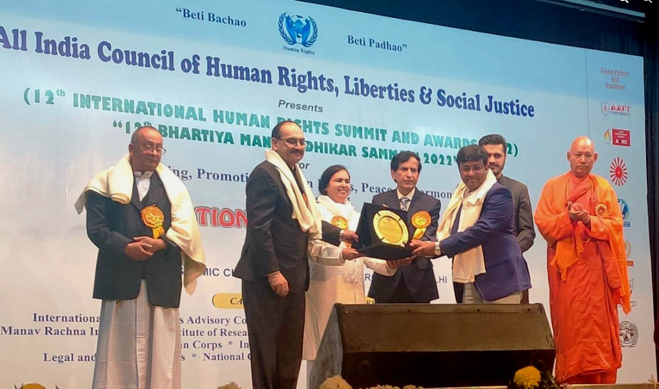 10th DECEMBER 2022 ALL INDIA COUNCIL OF HUMA RIGHTS , LIBERTIES & SOCIAL JUSTICE వారు DR.P.SHIVA RAJA PRASAD గారికి "OUTSTANDING SOCIAL REFORMER" అనే అవార్డు ను DELHI లో సత్కరించారు