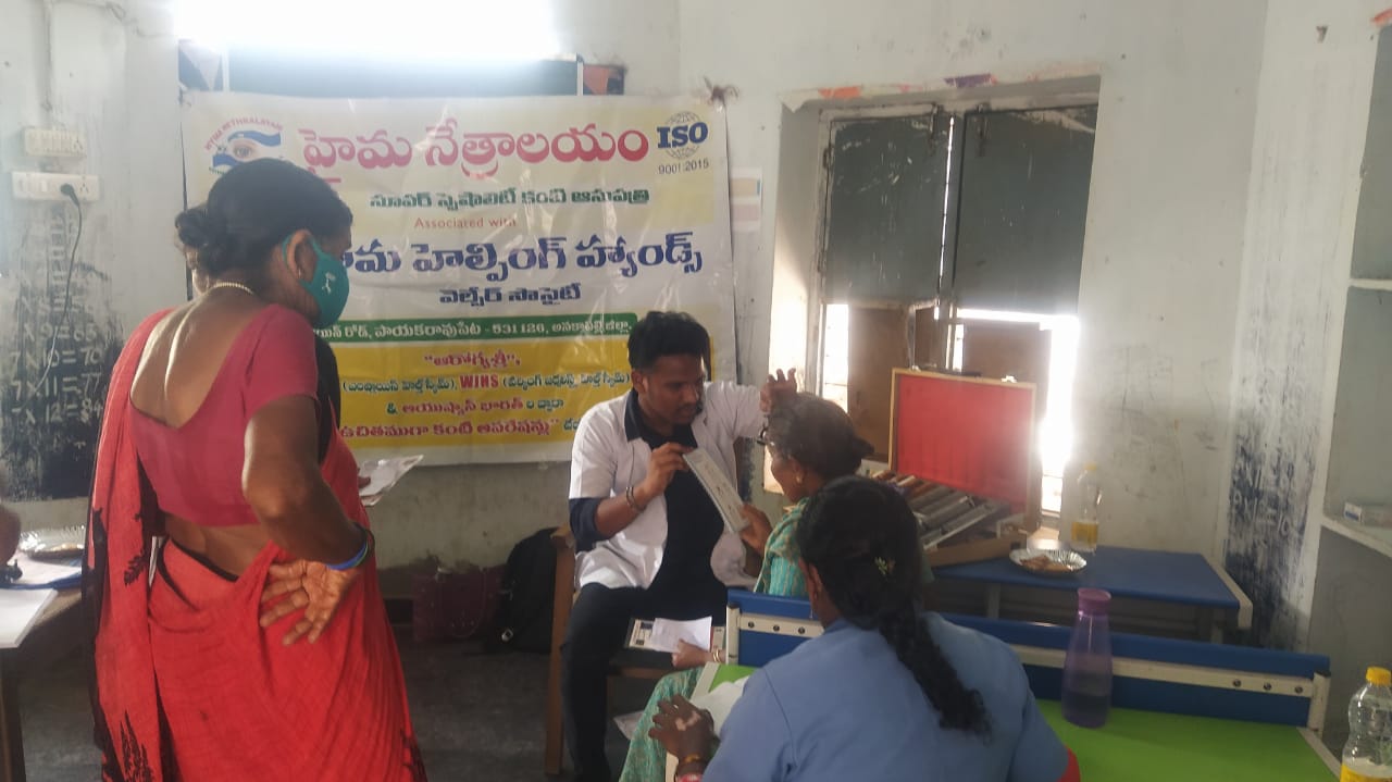 12-03-2024 న హైమ నేత్రాలయం సూపర్ స్పెషలిటీ కంటి ఆసుపత్రి వారి పర్యవేక్షణలో ఆంధ్రప్రదేశ్ పాయకరావుపేట, MASAHEBPETA గ్రామం లో EYE CAMP నిర్వహించడం జరిగింది