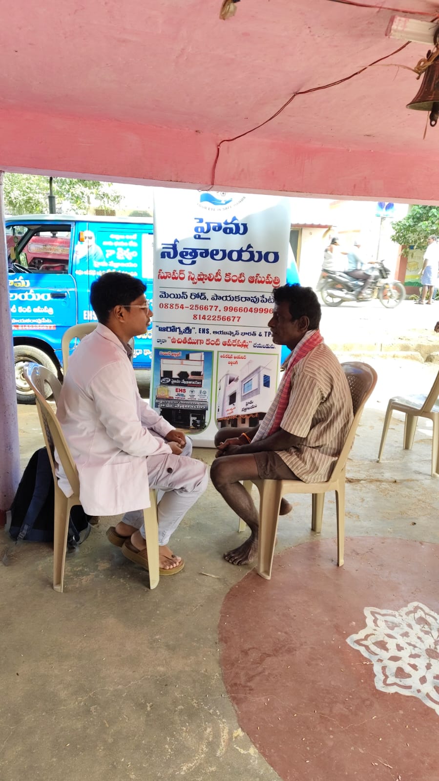 13-03-2024 ప్రపంచ గ్లకోమా వారోత్సవాలు సందర్భంగా HYMA NETHRALAYAM (SUPER SPECIALITY EYE HOSPITAL )వారు ప్రజలతో మమేకం అయ్యి నీటికాసులు (గ్లకోమా) వలన వచ్చే సమస్యలు ముందుగా ఎలా గుర్తించాలో DR శివ రాజా ప్రసాద్ మరియు DR విష్ణు వర్ధన్ రెడ్డి గారు(గ్లకోమా స్పెషలిస్ట్, అరవింద్ ఐ ఇన్స్టిట్యూట్, మదురై )ప్రజల్లో అవగాహన కార్యక్రమం నిర్వహించారు