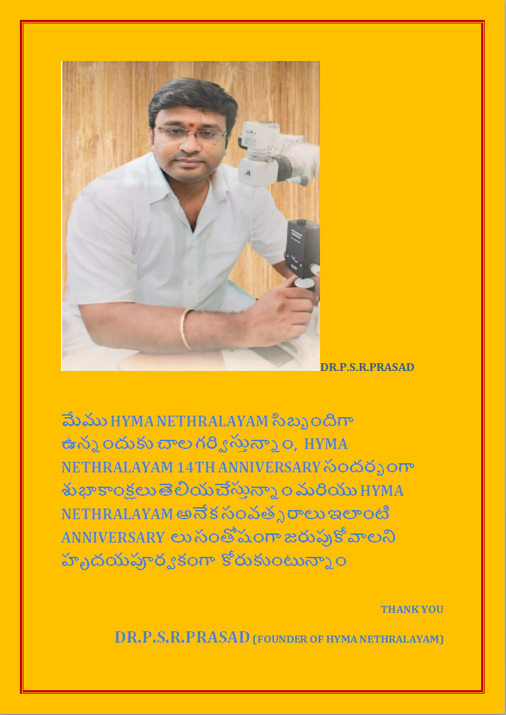 హైమ నేత్రాలయం 14TH ANNIVERSARY శుభాకాంక్షలు